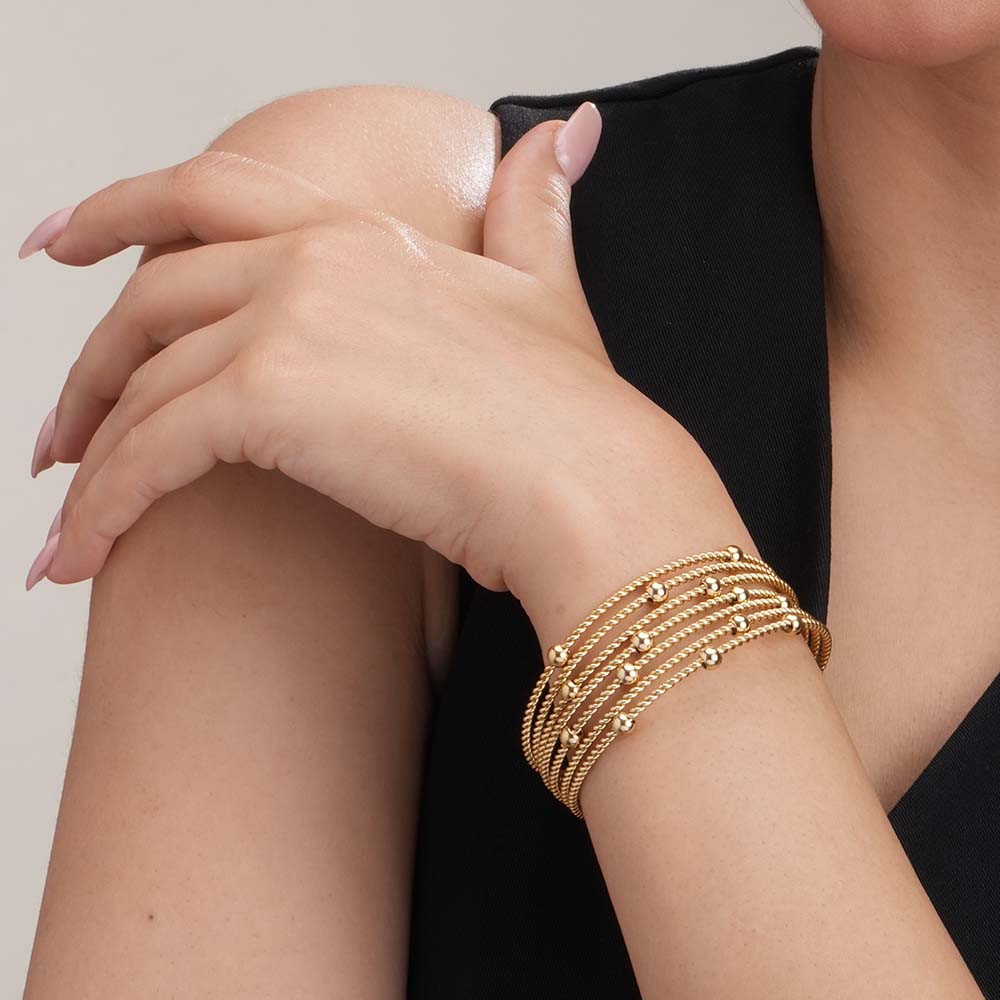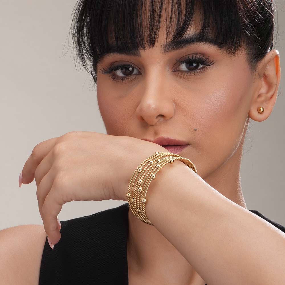 This sleek gold beaded bracelet for women is a must have accessory that combines simplicity with modern elegance. Featuring polished gold tone beads, it adds a subtle yet sophisticated charm to any outfit. Designed to be waterproof and anti tarnish, it offers lasting shine and durability, making it perfect for everyday wear, office looks, parties, or special occasions while keeping you effortlessly stylish.