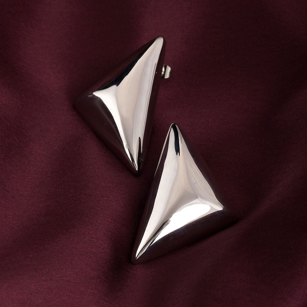 Less is more with these sleek triangle studs. The sharp angles and clean lines create a chic and contemporary look. These earrings are a versatile addition to your jewelry collection.