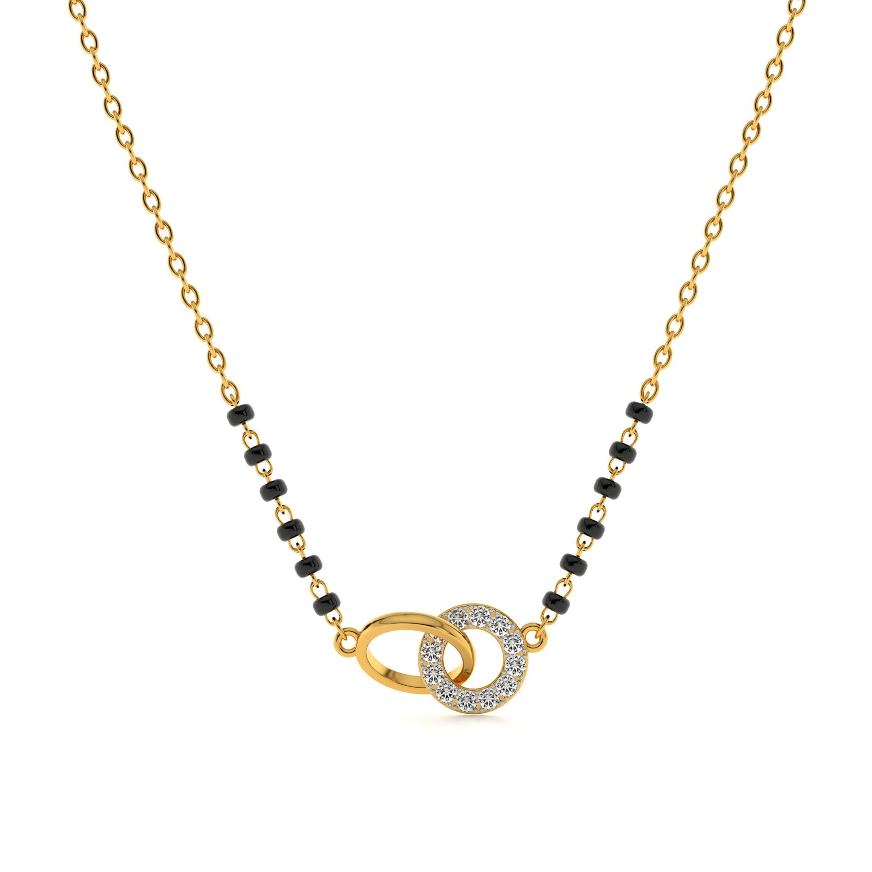 The Sparkling Orbitlink Lab Grown Diamond Mangalsutra features an elegant oval pendant linked with shimmering diamonds, symbolizing unity, connection, and eternity. The orbit-inspired design reflects the strength of love’s unbreakable circle, while each lab grown diamond enhances its brilliance. Crafted with modern artistry and traditional meaning, this mangalsutra stands as a radiant emblem of devotion, harmony, and lasting togetherness.
