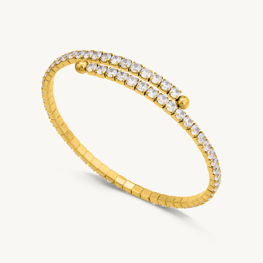 The Sparkling Bangle Bracelet is designed to bring subtle radiance to your everyday style. Its open cuff design offers a comfortable fit, while the white cubic zirconia stones add a touch of brilliance against the warm gold tone. Perfect for elevating casual looks or complementing evening attire, this versatile piece blends simplicity with a hint of glamour.