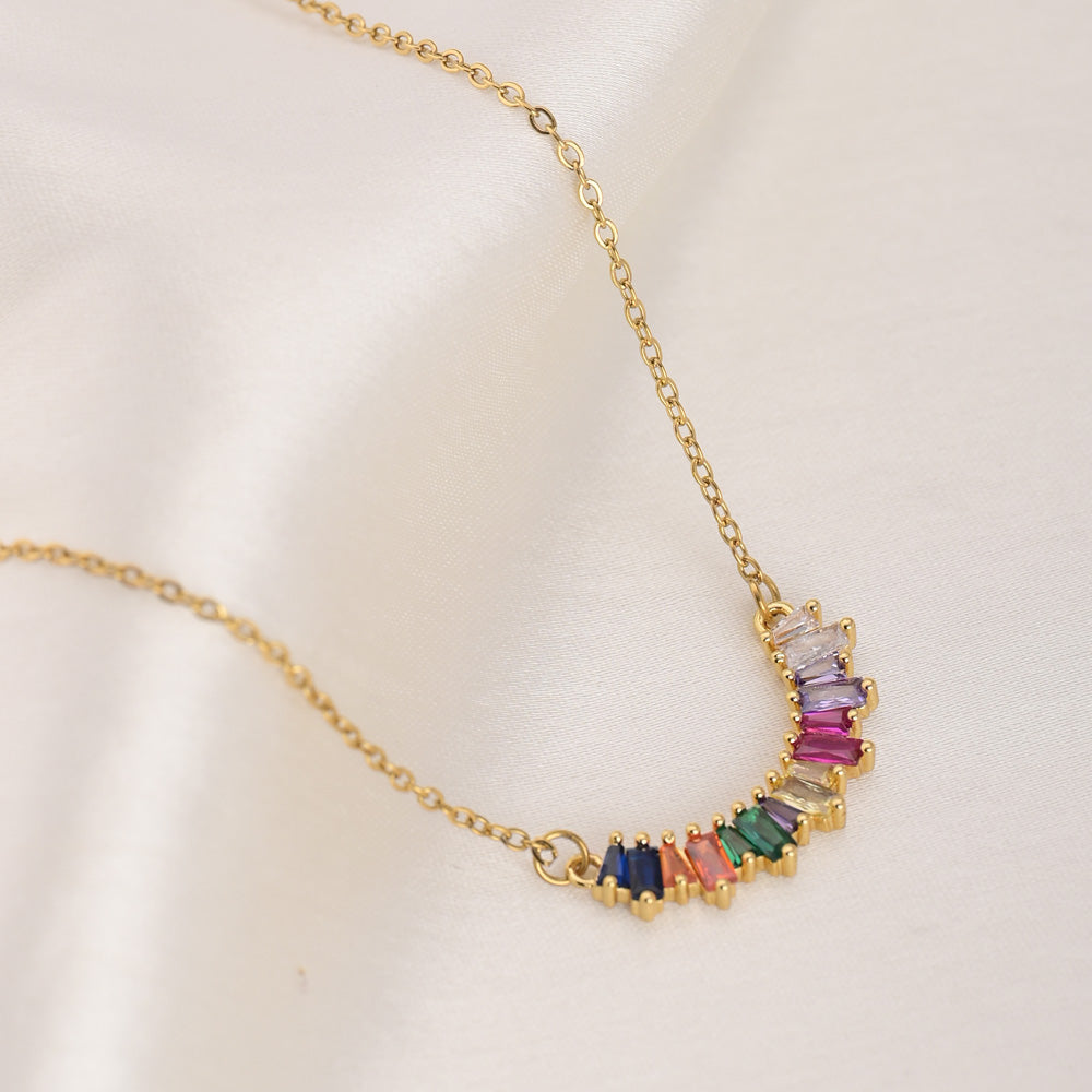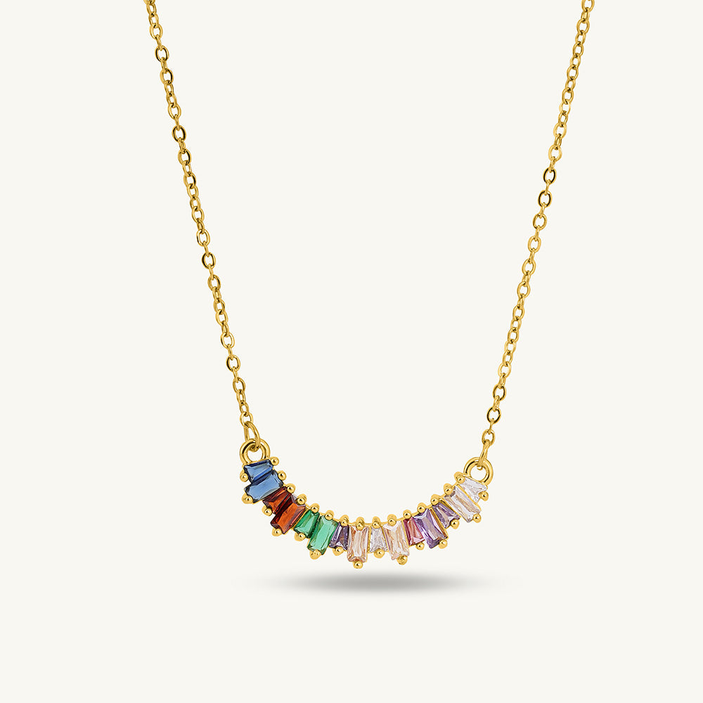 Introducing the Spectrum Necklace – a vibrant kaleidoscope of colour and brilliance that transcends the ordinary. This stunning necklace is a celebration of diversity, featuring an array of different-coloured gemstones that harmoniously come together to create a captivating and versatile piece. Whether you're seeking a burst of colour to elevate your daily ensemble or a standout accessory for a special event, the Spectrum Necklace is the perfect choice. Embrace the brilliance of diversity with this enchanting piece that effortlessly complements your vibrant spirit and adds a touch of joy to your jewellery collection.