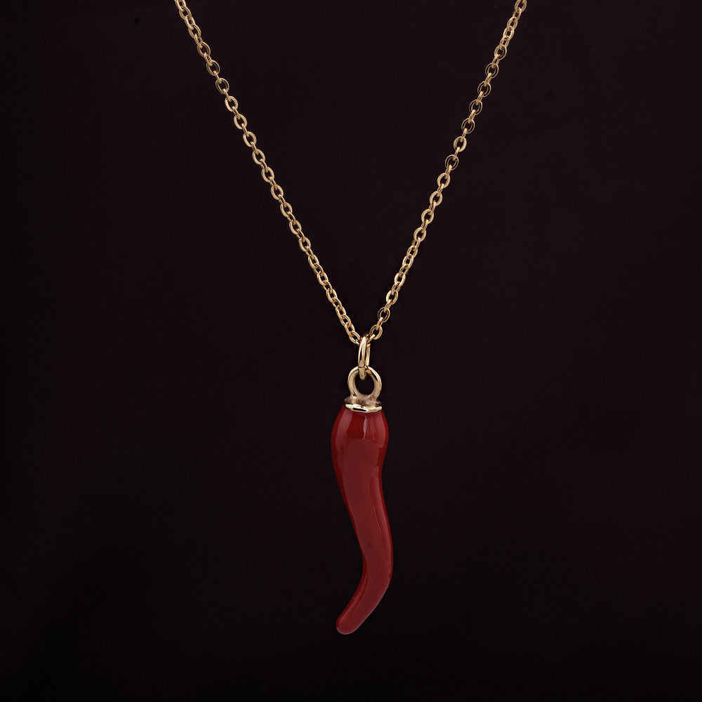 The Spicy Charm Necklace is a chic and versatile jewellery piece that adds a touch of contemporary elegance. Crafted in 18k gold-plated stainless steel, its sleek pendant design makes it perfect for layering or wearing solo. This necklace effortlessly elevates casual outfits and evening ensembles alike, offering a refined, fashion-forward statement for any occasion.