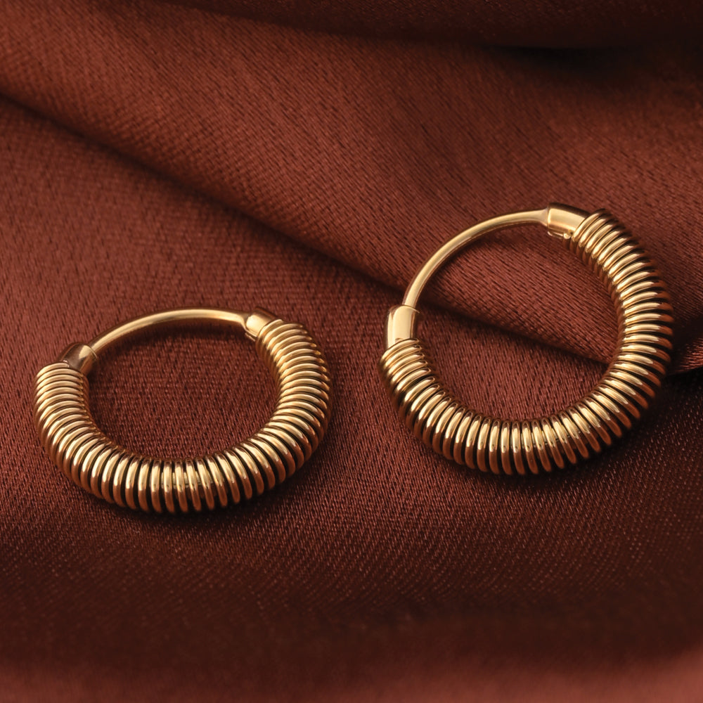 Elevate your elegance with our exquisite Spring Hoop Earrings, where modern allure effortlessly combines with timeless charm. Meticulously crafted, these gold-plated earrings redefine sophistication for contemporary women. The graceful spring-inspired design adds a touch of opulence and rejuvenation to the classic hoop silhouette, creating an accessory that seamlessly harmonizes with any ensemble. Immerse yourself in the artistry of jewelry that skillfully blends tradition and innovation.