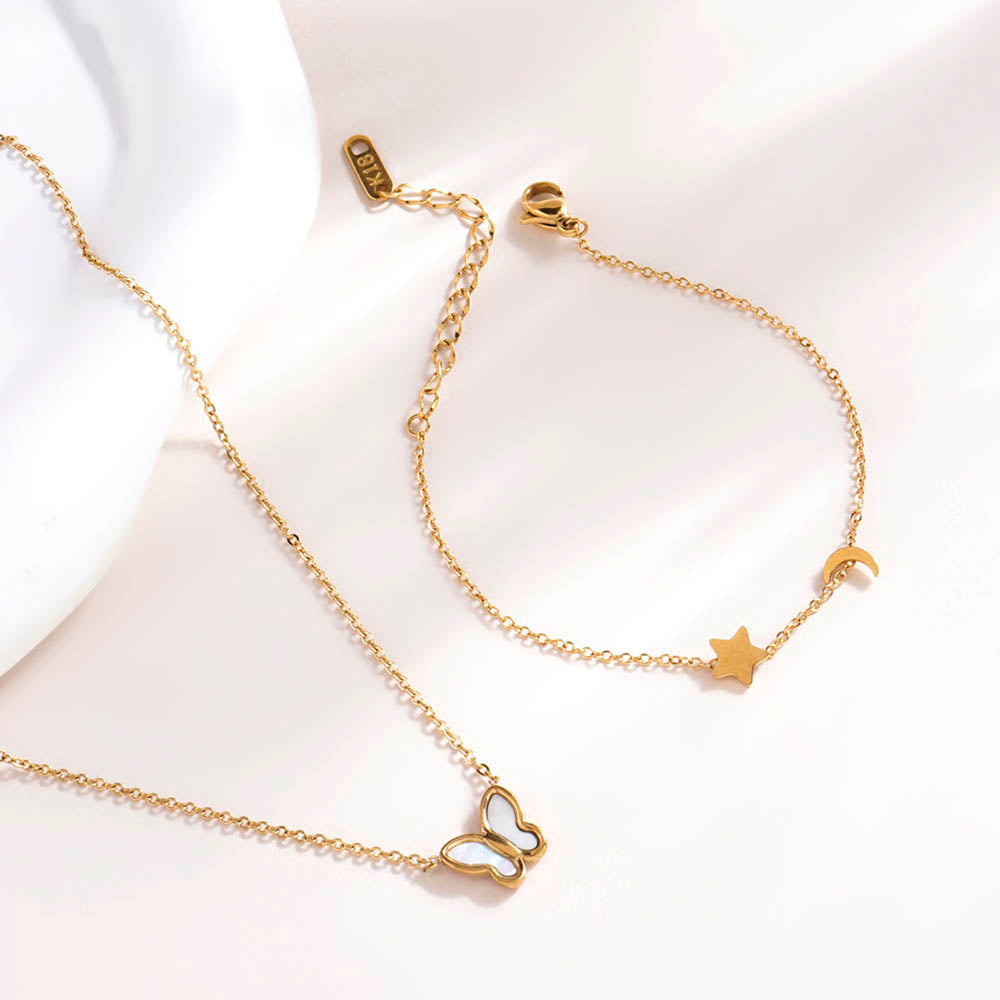 Star Moon Bracelet & Little Butterfly Necklace Combo Set