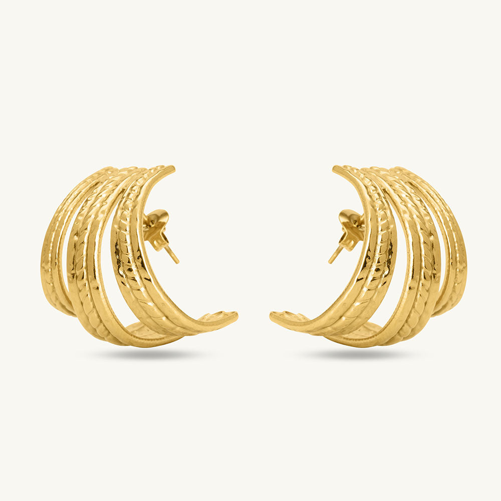 Bold yet refined, these statement gold stud earrings are designed to make an impression. Crafted in stainless steel with a radiant 18k gold finish, they bring together modern minimalism and timeless elegance. Waterproof and anti-tarnish, they’re versatile staples that effortlessly complement both everyday wear and occasion dressing, making them a must-have for women who love impactful jewellery.