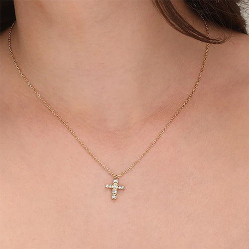 STYLING TIP: Pair with neutral tops to let the sparkling cross stand out.