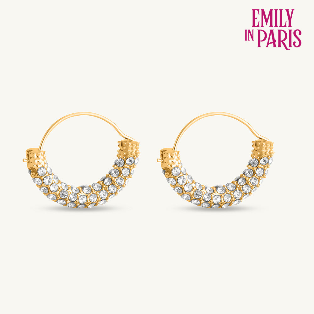 Elegant and sparkling, these 18k gold plated stone-studded hoop earrings feature white cubic zirconia set in a classic hoop design. Their versatile style adds subtle glamour to any outfit, while the waterproof and anti-tarnish finish ensures long-lasting shine. Perfect for both everyday wear and special occasions, these earrings are a timeless addition to your jewellery collection.