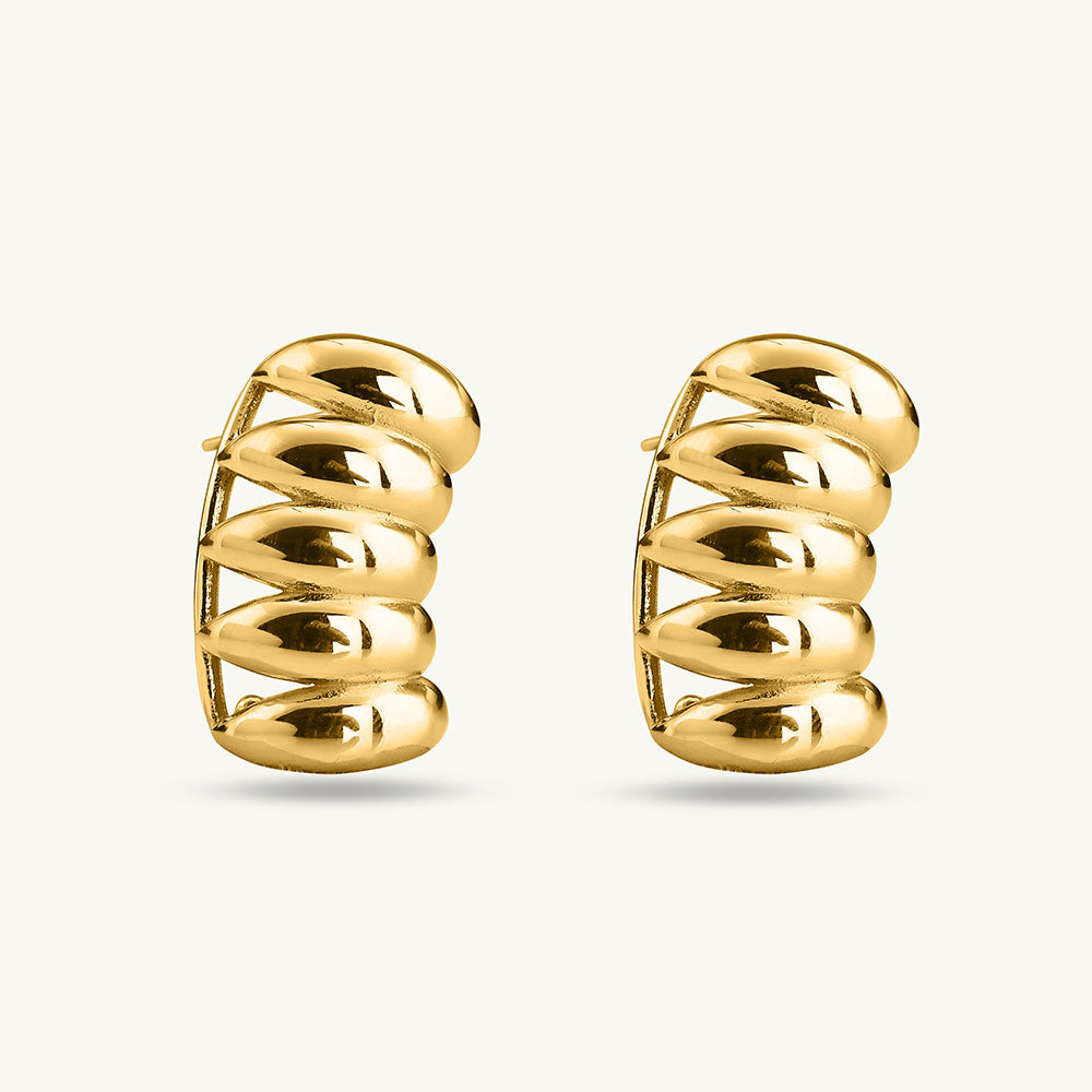 Elevate your everyday and evening looks with these 18k gold plated striped stud earrings. Designed as modern climbers, their sleek striped pattern adds depth and contemporary sophistication. Crafted from durable stainless steel with a radiant gold finish, these earrings are waterproof and anti-tarnish, making them a versatile accessory for women who love stylish, long-lasting jewellery.