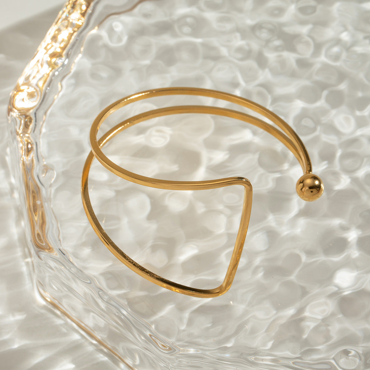 The Stylish Triangle Cuff Bracelet is a modern take on a classic accessory. Designed in 18k gold tone stainless steel, this gold cuff bracelet is both waterproof and anti-tarnish, making it perfect for everyday wear. The unique triangle design adds a bold yet refined edge, while its open cuff style ensures comfort and versatility. A statement piece that transitions effortlessly from casual to chic looks.