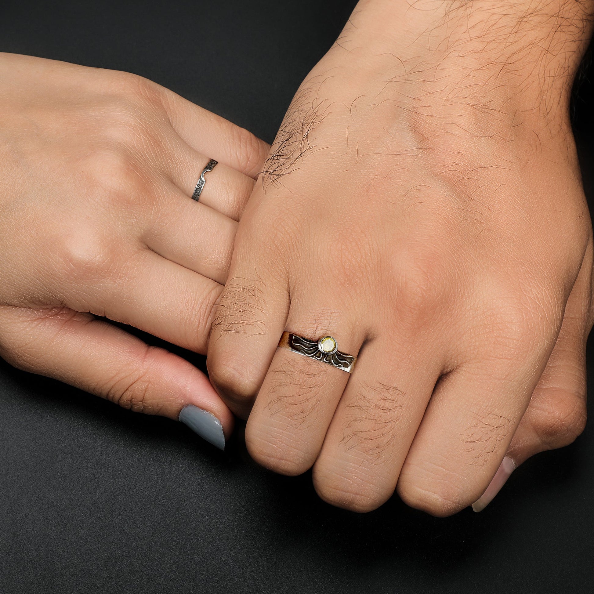 The Oxidised Silver Celestial Love Couple Bands are inspired by a love that drives life into our soul just like these celestial bodies.