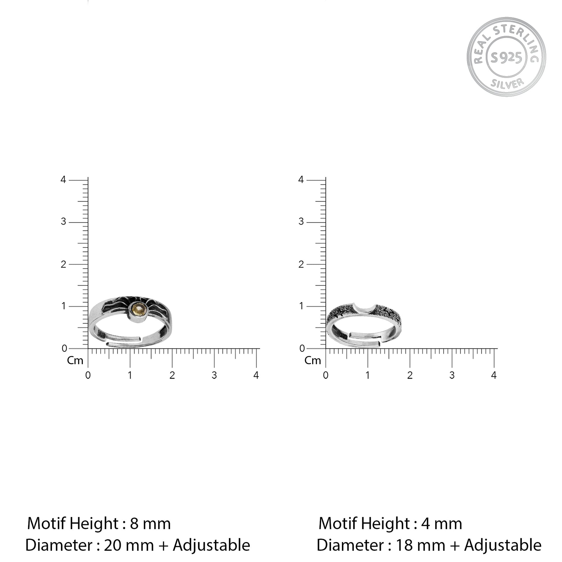 • Female Ring Motif Height: 4 mm, Diameter: 18 mm + Adjustable