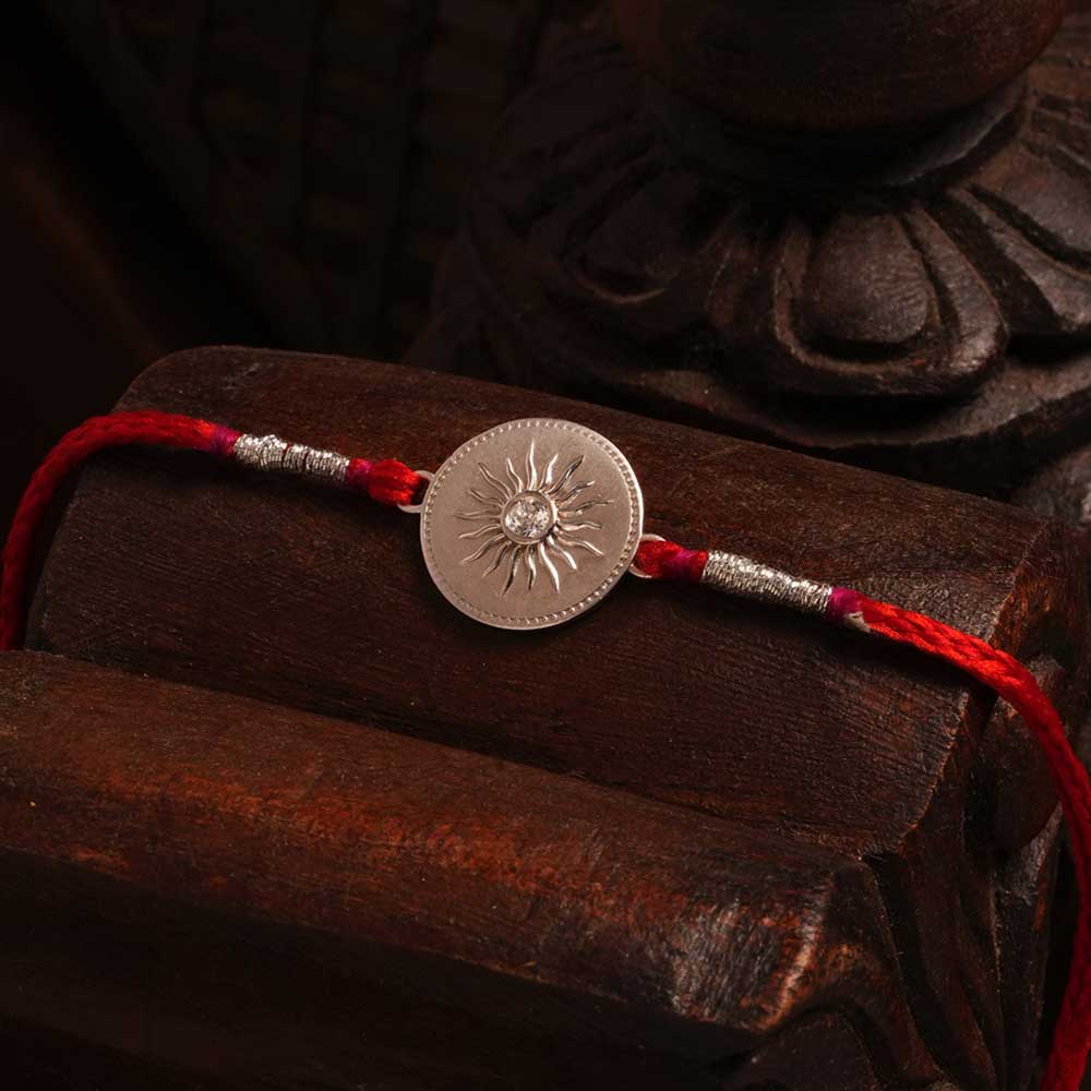 The Sunlight 0.01 Carat Lab-Grown Diamond Rakhi is a stunning expression of love and brilliance, meticulously crafted on pure 999 silver for exceptional purity and shine. Featuring a lab-grown diamond that radiates with the intensity of the sun, this Rakhi symbolizes the enduring warmth and strength of your sibling bond. The eco-friendly diamond offers the same sparkle and durability as natural stones, making it a responsible yet luxurious choice. Its refined design and superior craftsmanship ensure this Rakhi will be treasured as a timeless keepsake, celebrating your relationship with elegance and heartfelt meaning.