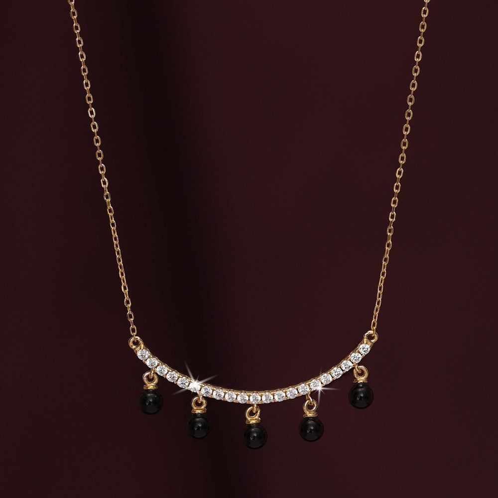 The 925 Sterling Silver Tarini Diamond Mangalsutra is a graceful ode to eternal love and strength. Adorned with sparkling cubic zirconia stones, it reflects purity and devotion while blending seamlessly with modern elegance. The 18k gold tone plating enhances its timeless charm, making it a perfect piece for everyday wear or special occasions. Designed to be light, radiant, and meaningful, this mangalsutra becomes a cherished symbol of the bond you hold close to your heart.