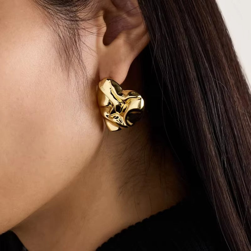 Textured Heart Stud Earrings