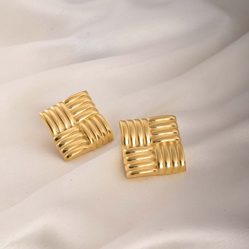 Embrace the captivating interplay of texture and form with the Textured Square Earrings. Crafted from gleaming gold, these earrings feature perfectly proportioned squares that come alive with a mesmerizing textured surface.