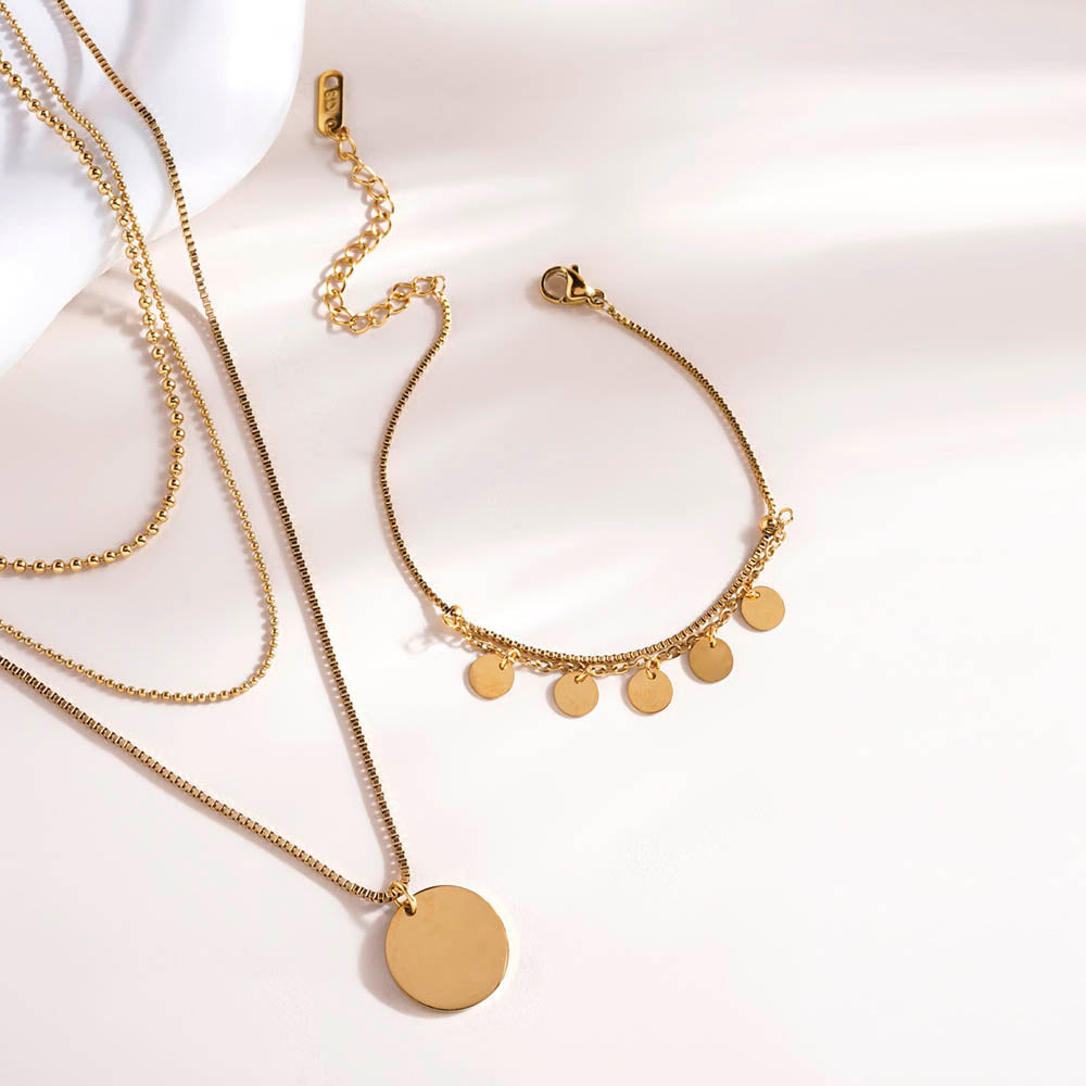 Tiny Plates Bracelet & Round Belle Three Layer Necklace Combo Set