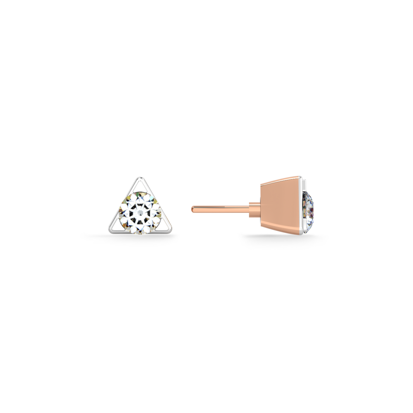 The Triangle Spark Mini Stud Earrings feature a sleek triangular silhouette with radiant detailing for a subtle yet striking look. Compact in size but high in brilliance, they are ideal for layering with other studs or wearing solo for a minimal statement. A versatile piece that adds a touch of modern sparkle to any outfit.