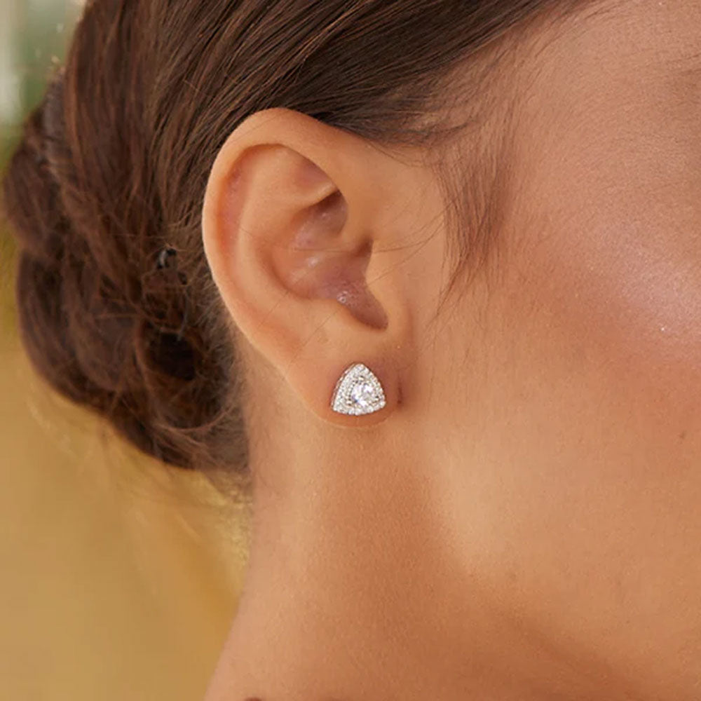 Owning these Trillion Beauty Stud Earrings for women is must who appreciate the fusion of contemporary design and timeless appeal. These stud earrings for women stand out with their trillion-cut gemstone, which adds a modern and unconventional touch to the traditional stud earring design.