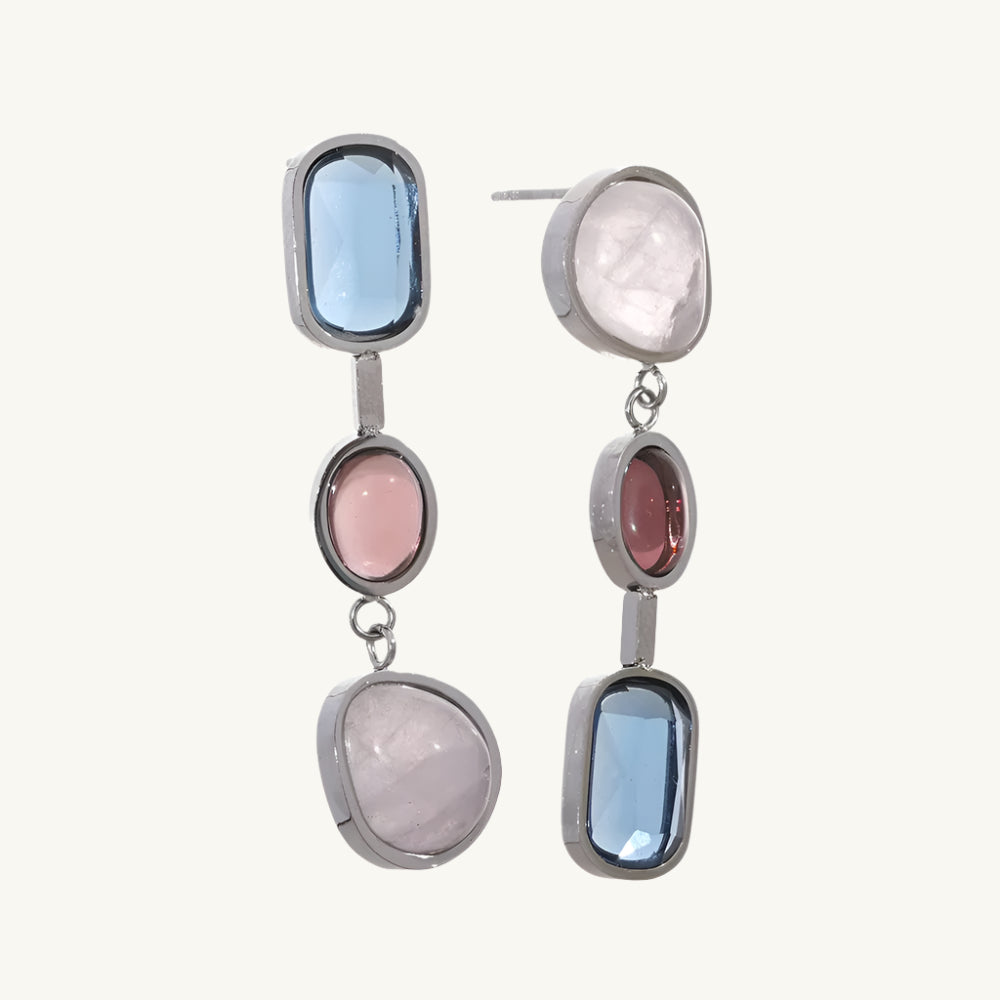 Triple Natural Crystal Drop Earring