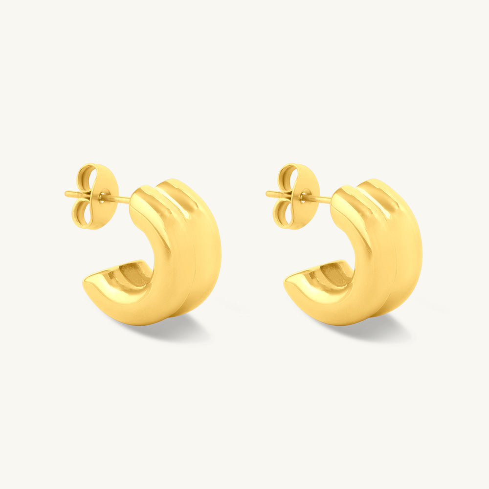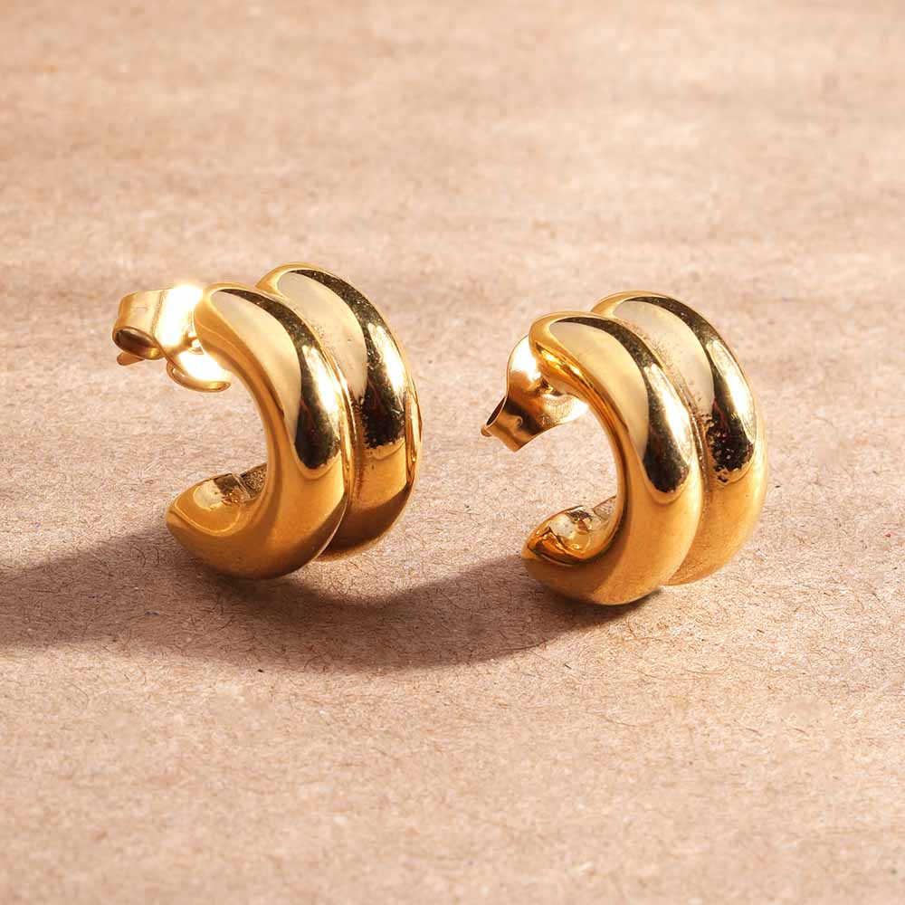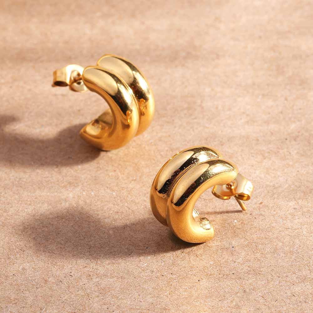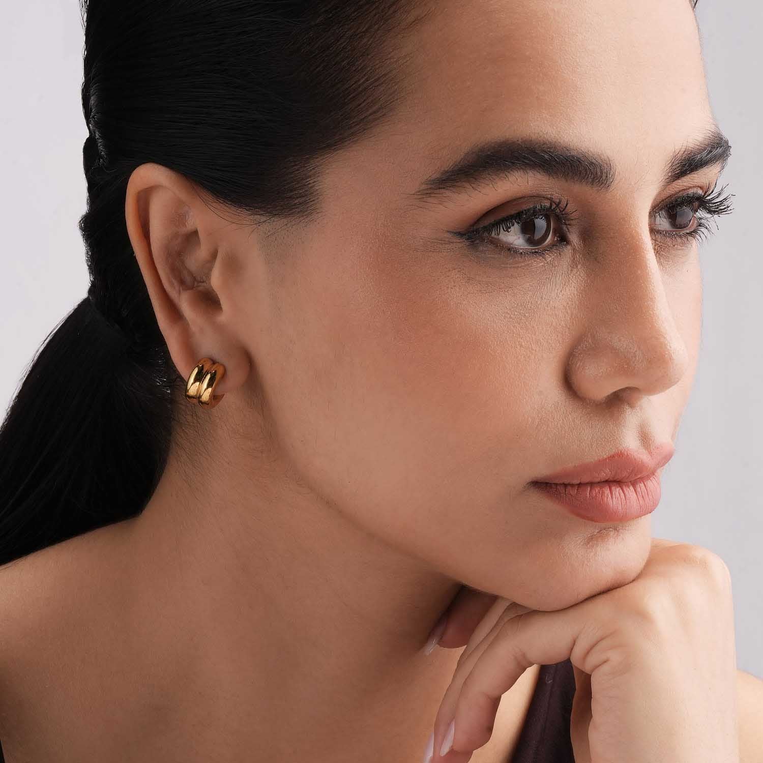 Twine Glow Hoops feature golden bands entwined with luminous detailing, symbolizing unity, strength, and brilliance. Their radiant design makes them a versatile accessory for celebrations or daily wear, adding a bold yet elegant charm. A jewellery essential that balances modernity with timeless appeal.