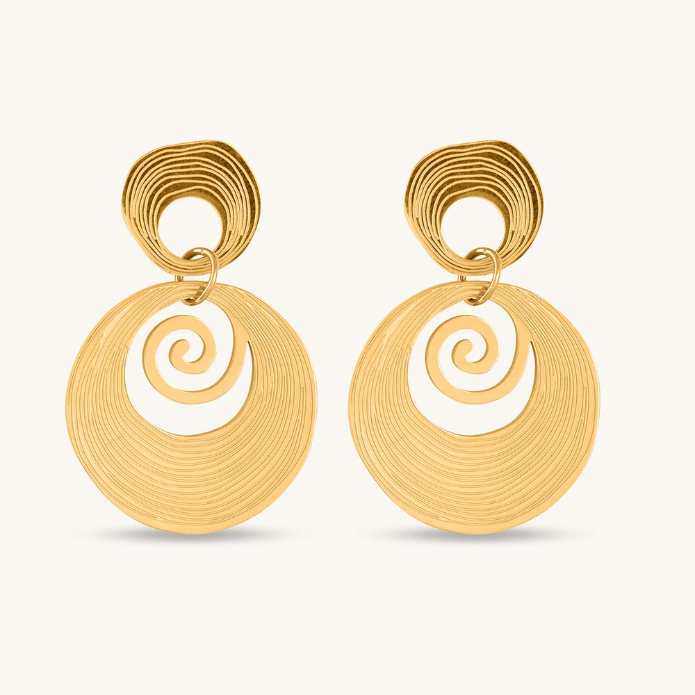Embrace the dynamic energy of the Twirling Circle Earrings. These captivating earrings showcase a mesmerizing design that embodies the continuous flow of a twirling circle.