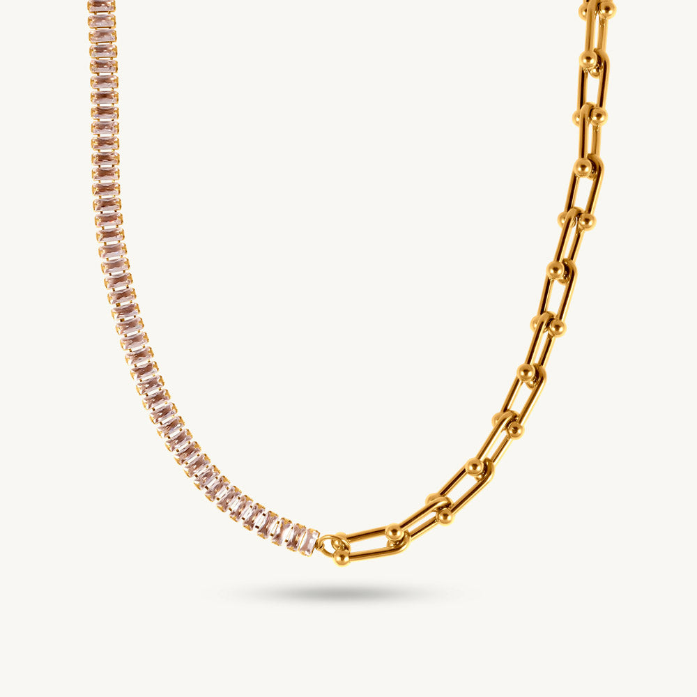 The Two-Tone Chunky Link Chain redefines bold jewellery with its striking mix of golden and metallic links. Symbolizing strength and individuality, it’s a contemporary accessory for women who love statement pieces. Ideal for edgy styling, parties, or modern everyday wear, this chain adds power and presence to any look. A must-have for a confident, fashion-forward jewellery collection.