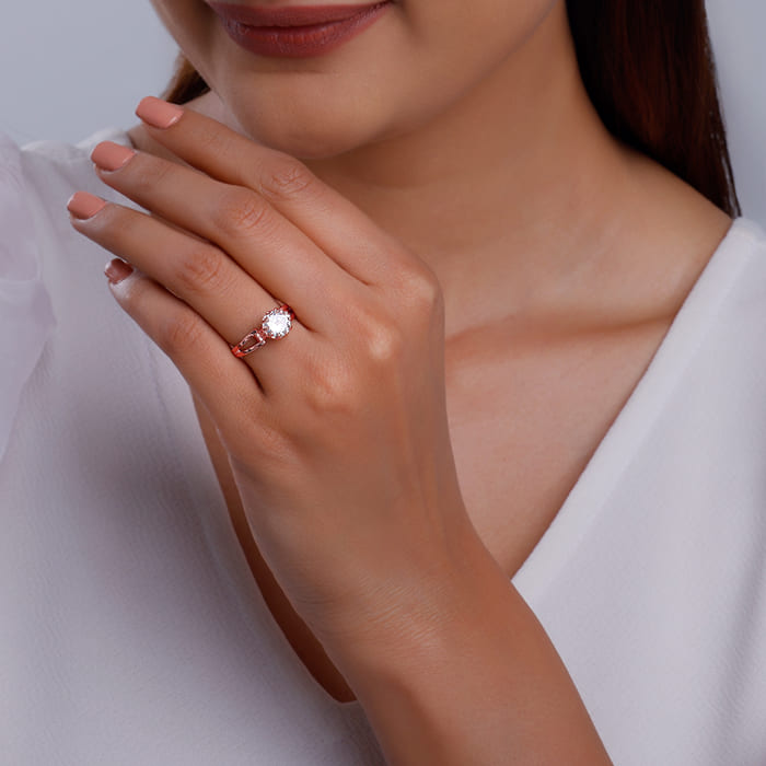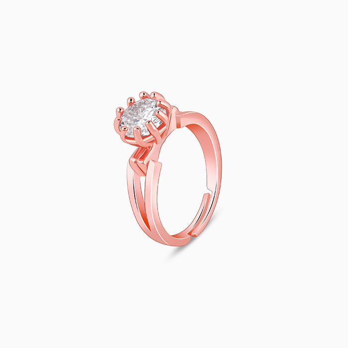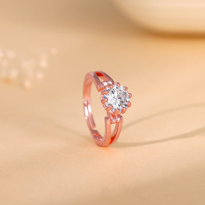 This rose gold ring features a big zircon at the centre.