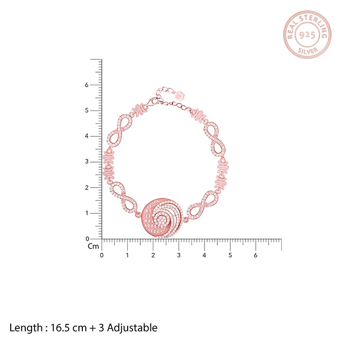 The rose gold bracelet has a gorgeous design with different patterns and is embellished with zircons.