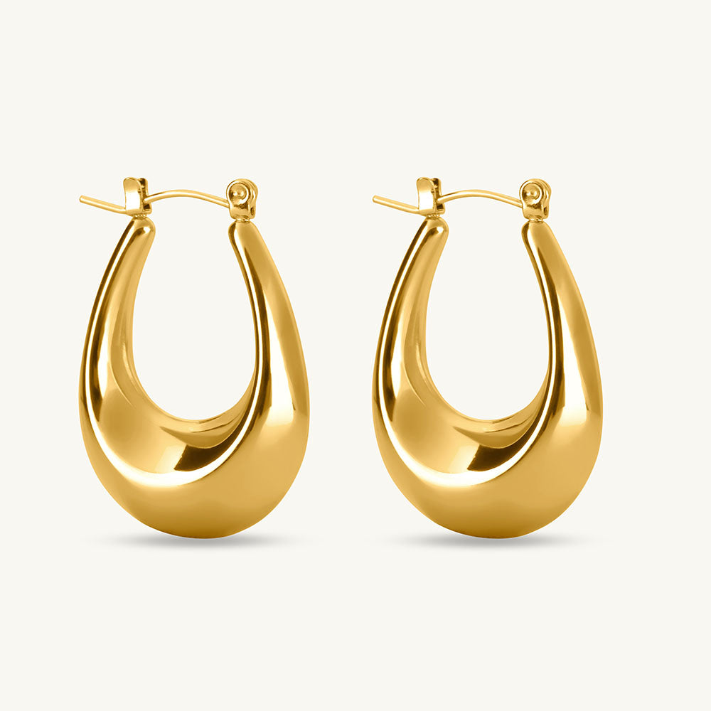 Bold and modern, these 18k gold plated U-shaped chunky earrings make a stylish statement while remaining versatile. Their polished gold finish ensures lasting shine, and the waterproof, anti-tarnish design keeps them looking flawless. Perfect for elevating casual outfits or adding edge to evening ensembles, these hoops bring contemporary charm to your jewellery collection.