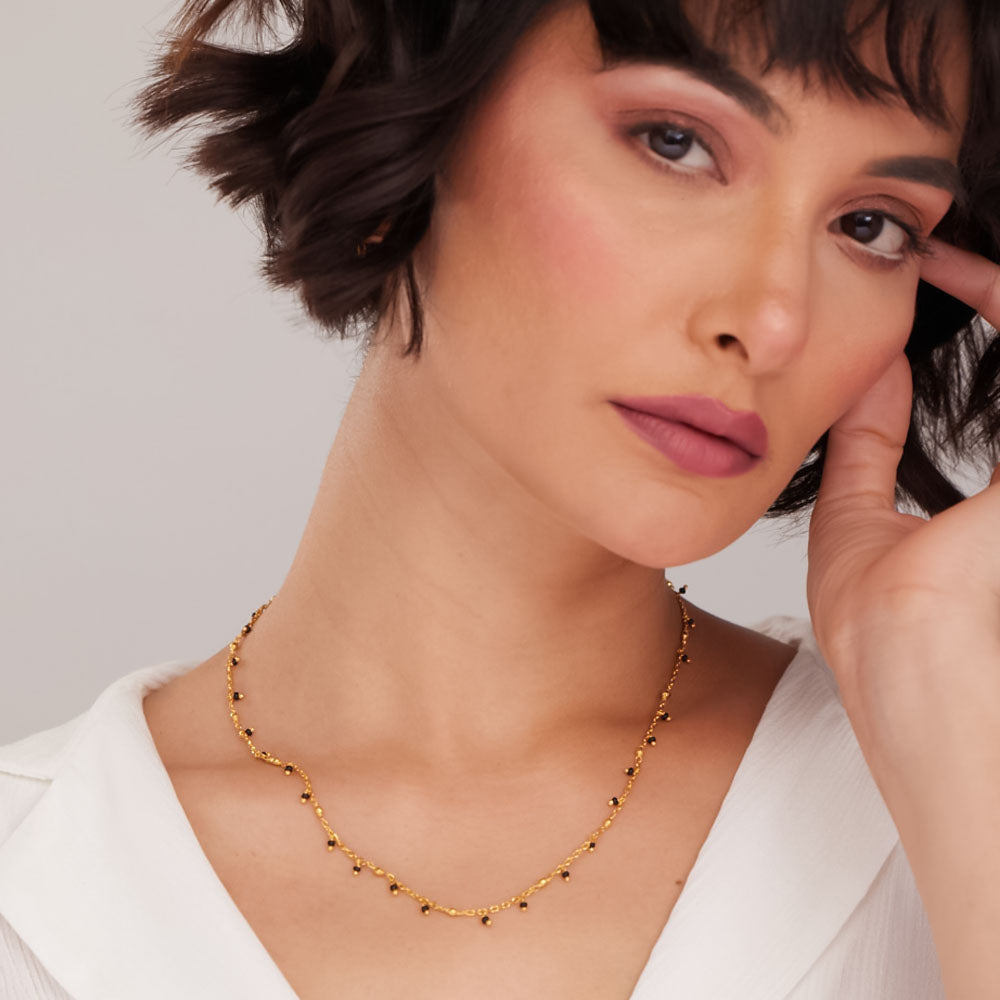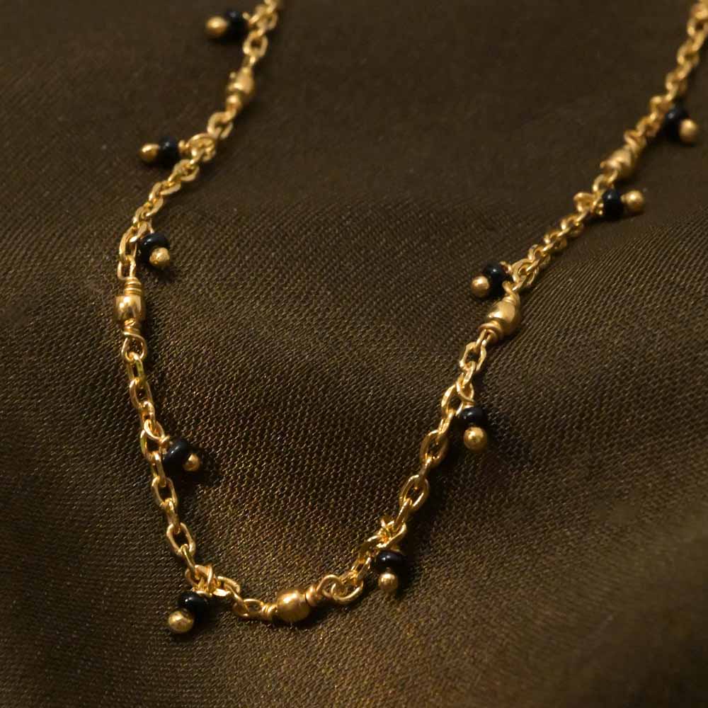 Embodying the eternal bond of love and marriage, this mangalsutra embraces cultural traditions and flaunts a contemporary design. Meticulously crafted with 18K gold, it gracefully flows around your neck, affirming the beauty of your marital bond. This design is a whispered affirmation of heritage and timeless elegance.