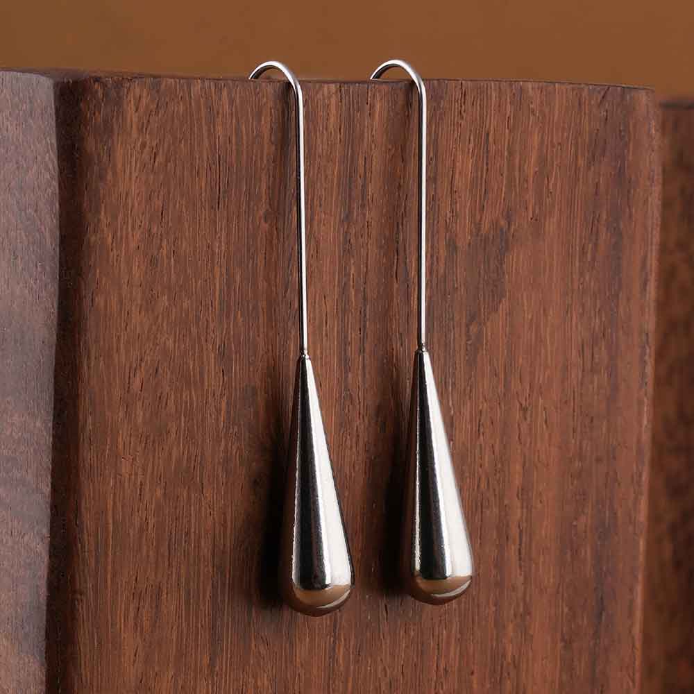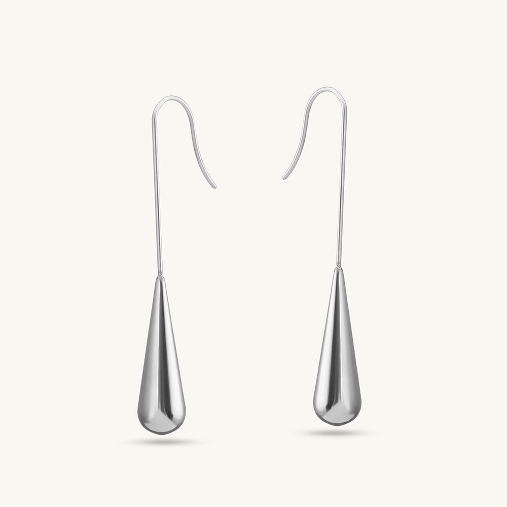 The Vatsurica Drop Earrings blend fluid design with modern sophistication. Crafted in stainless steel and finished with a lustrous rhodium plating, their sculptural drop silhouette captures light beautifully with every movement. Waterproof, anti-tarnish, and skin-friendly, these earrings redefine contemporary elegance - perfect for those who appreciate artistic form and timeless minimalism in fine jewellery.