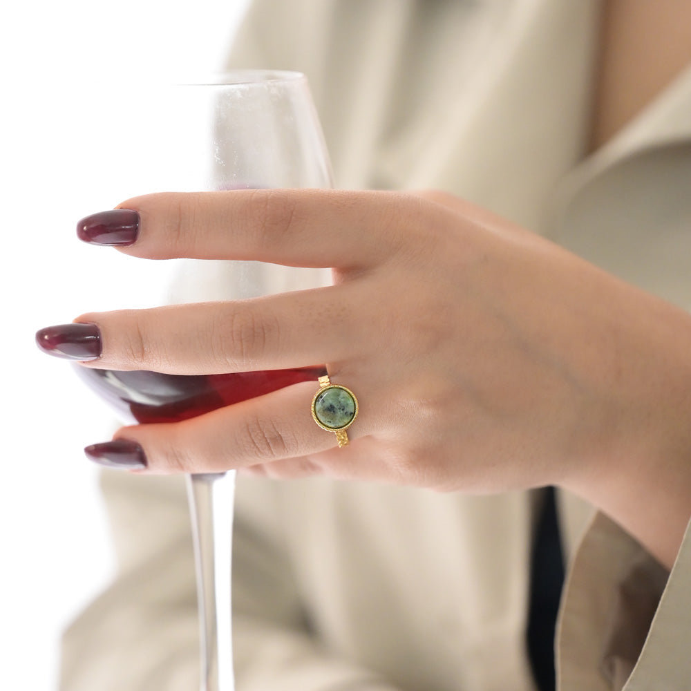 Trendy Freak proudly introduces a radiant masterpiece from the Vintage Love Collection – the “Vintage Meadow Ring”. Glistening in a captivating golden hue, this ring is adorned with a mesmerizing light green-colored stone, exuding a sense of timeless charm. The adjustable feature ensures a perfect fit, allowing you to express your unique style effortlessly. Meticulously crafted with a nod to vintage aesthetics, this ring becomes more than an accessory; it is a symbol of enduring love and grace. Elevate your style with the Golden Elegance Adjustable Ring, a versatile and exquisite addition to the Vintage Love Collection by Trendy Freak. Adorn yourself with the fusion of golden splendor and ethereal green hues, celebrating the timeless beauty of love