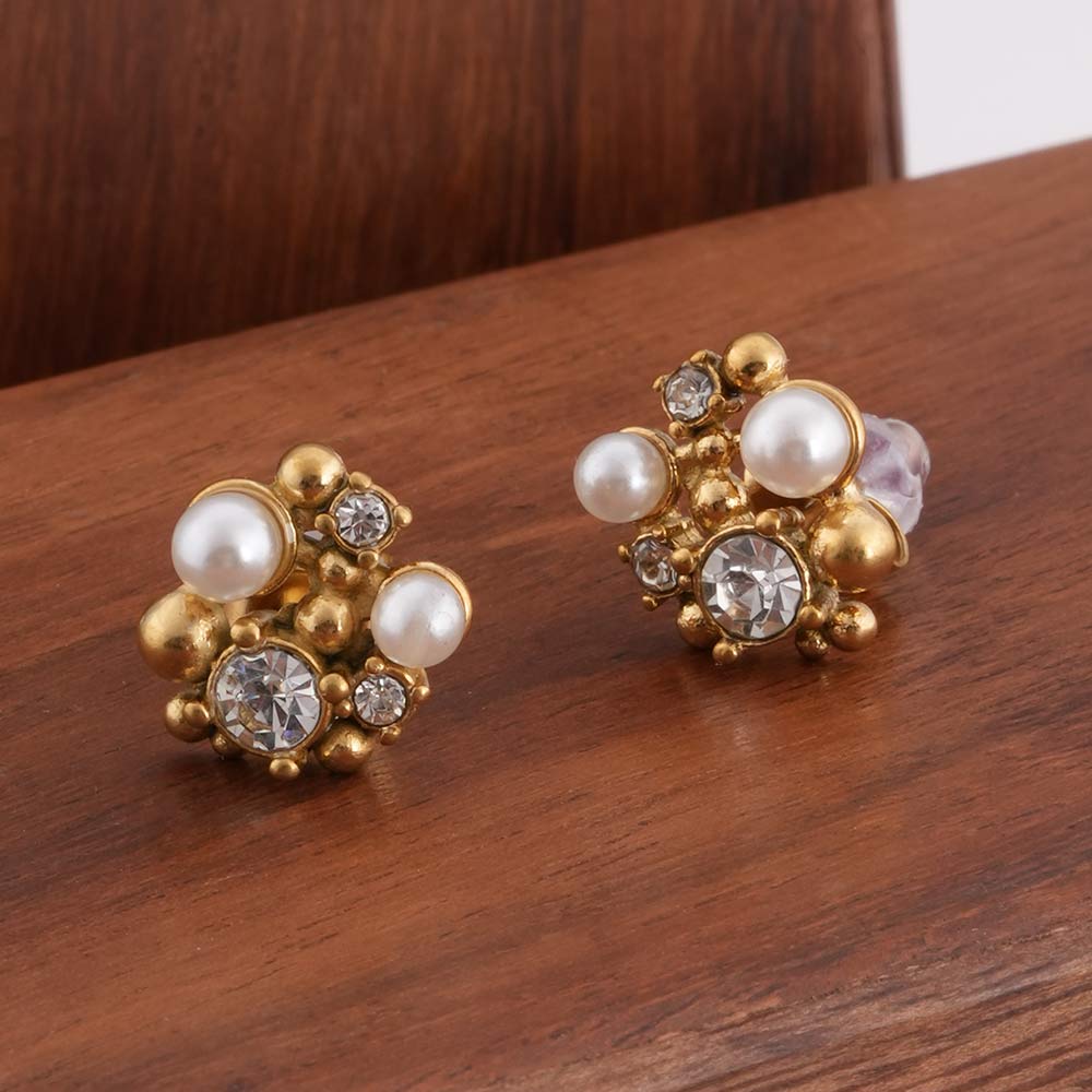 Vintage Style Pearl and Crystal Studs