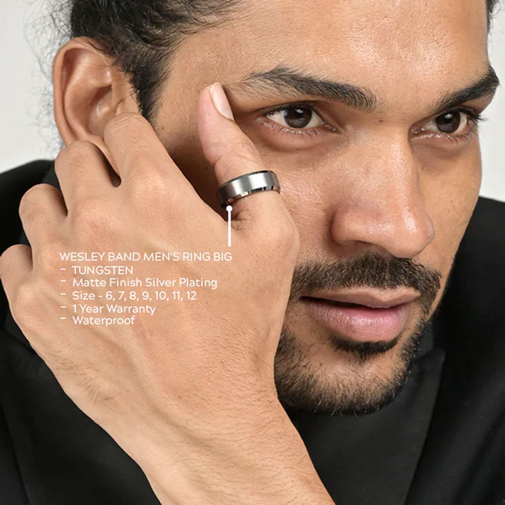 Wear the Wesley Band Men's Ring as a standalone accessory to create a bold and stylish statement. Let the ring take center stage by pairing it with neutral or monochromatic outfits. Its unique design and intricate details draw attention, allowing you to showcase your individuality and fashion-forward attitude. This styling choice is perfect for special occasions or when you want to make a memorable impression.