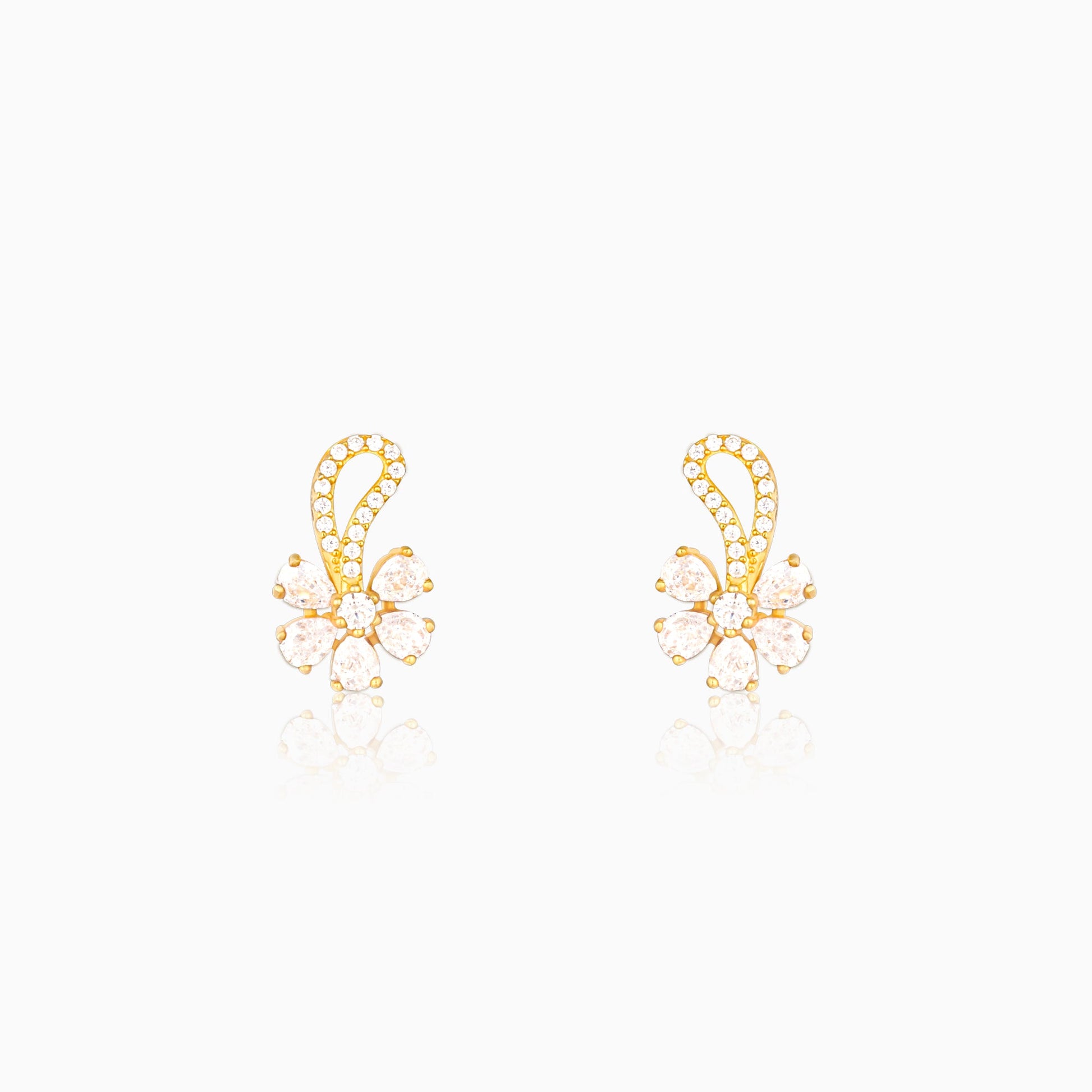 The Golden White Floral Damsel Earrings have an ethereal design with zircons studded on the earrings.