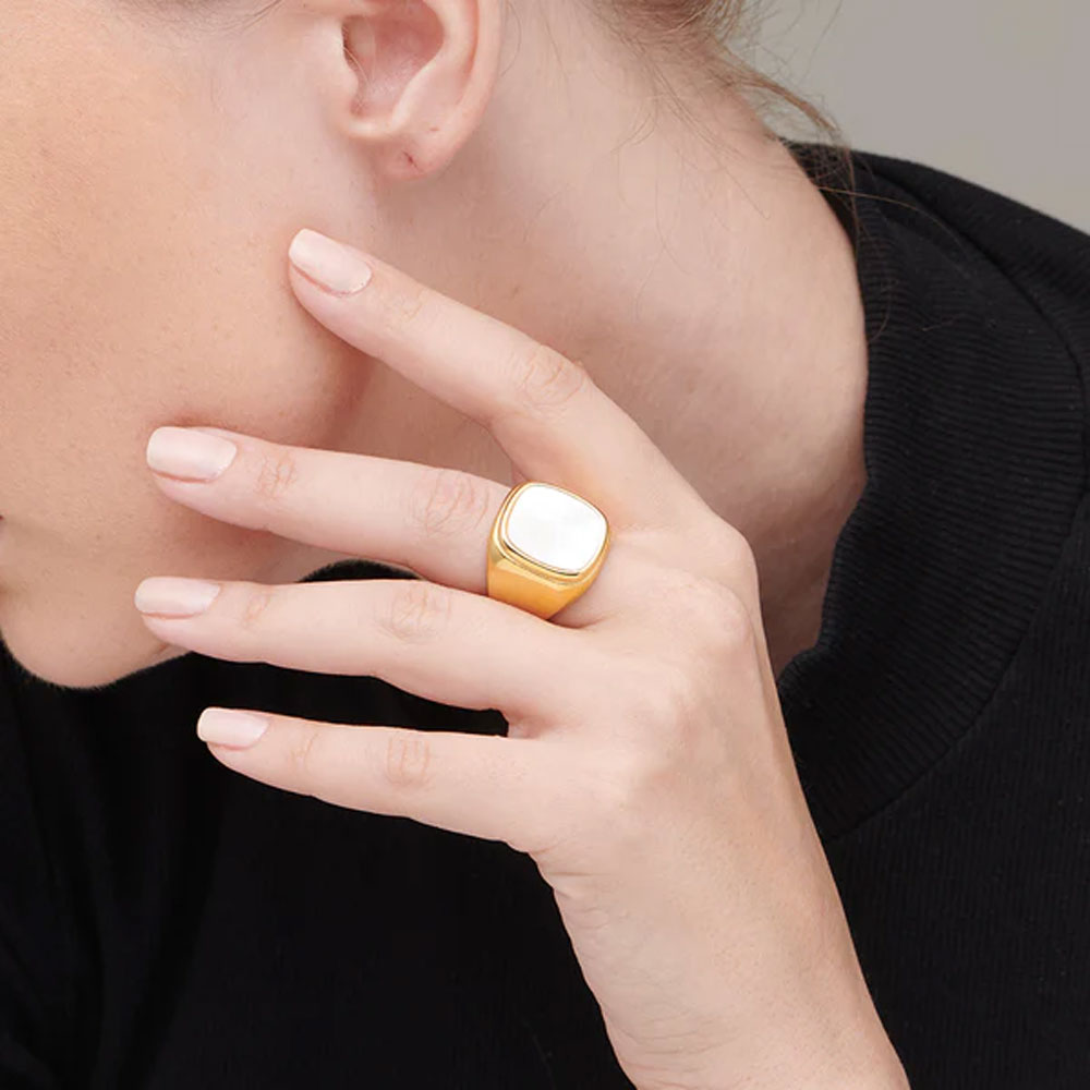 Turn heads with this Gold-Plated Cocktail Ring, crafted from stainless steel and finished in a radiant 18k gold tone. Designed for bold elegance, this statement ring is waterproof, anti-tarnish, and perfect for special occasions. With its size 7 fit, it offers comfort and glamour in one. A versatile piece of jewellery, it adds instant sophistication to evening outfits, festive celebrations, or even chic vacation looks.