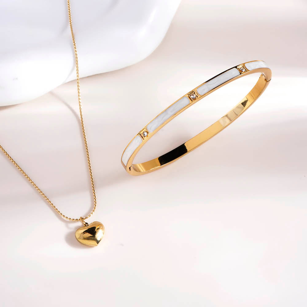 White Heart Necklace & Luminous Lore Bracelet Combo Set