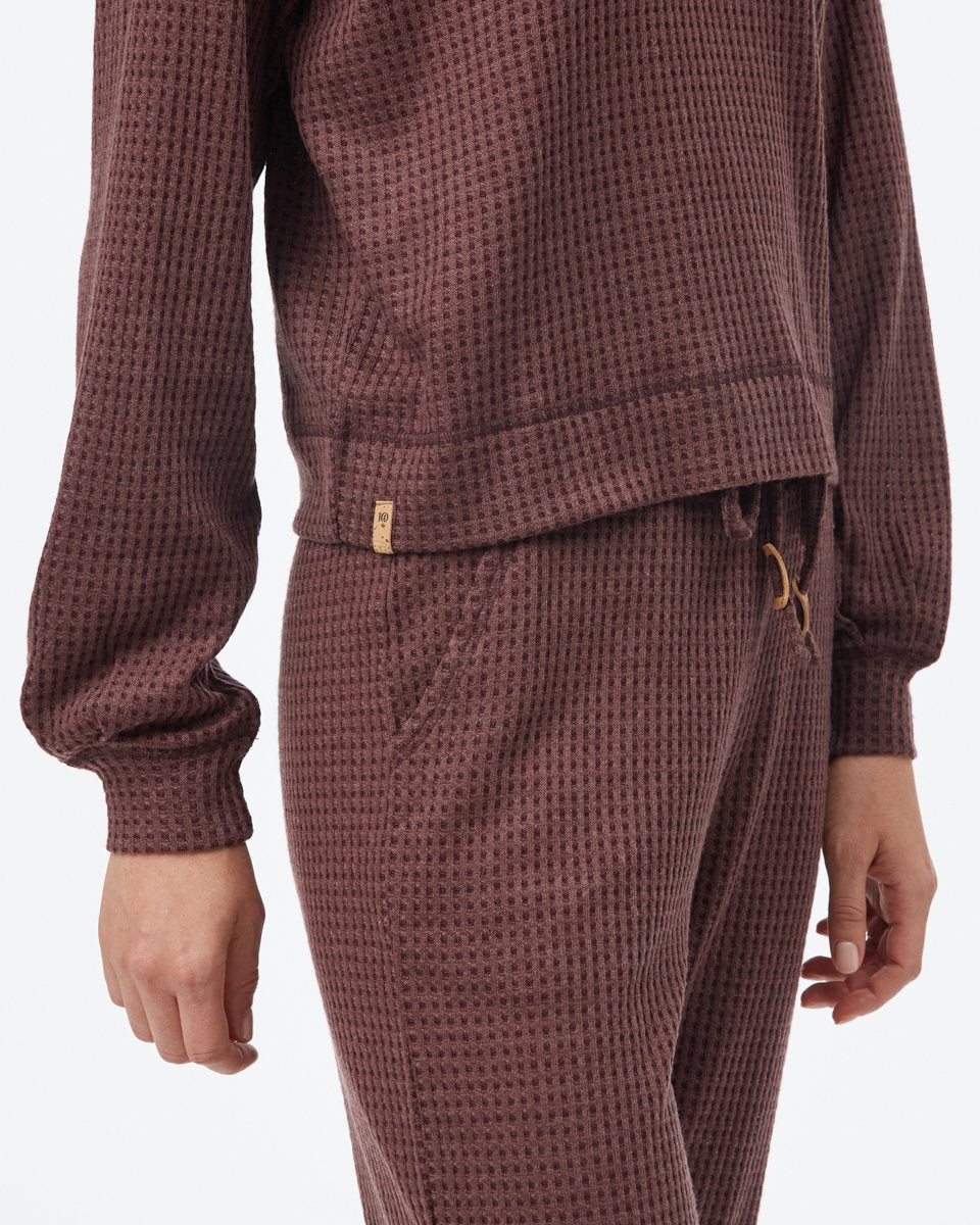 Whoever said you have to sacrifice comfort for style never met this top. With a cowl neck, waffleknit fabric and balloon sleeves, this sustainable, not-so-basic longsleeve elevates your loungewear game.