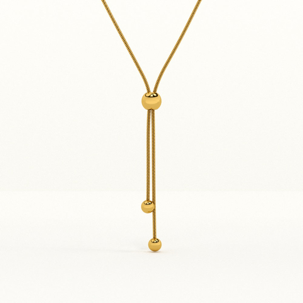 The Wrap Lariat Necklace brings effortless elegance with its versatile bolo design and sleek gold-tone finish. Crafted in stainless steel with a radiant 18k gold tone, this waterproof and anti-tarnish necklace adds a chic accent to casual, office, or evening outfits. Perfect for layering or wearing solo, it elevates both everyday and festive ensembles with modern sophistication.