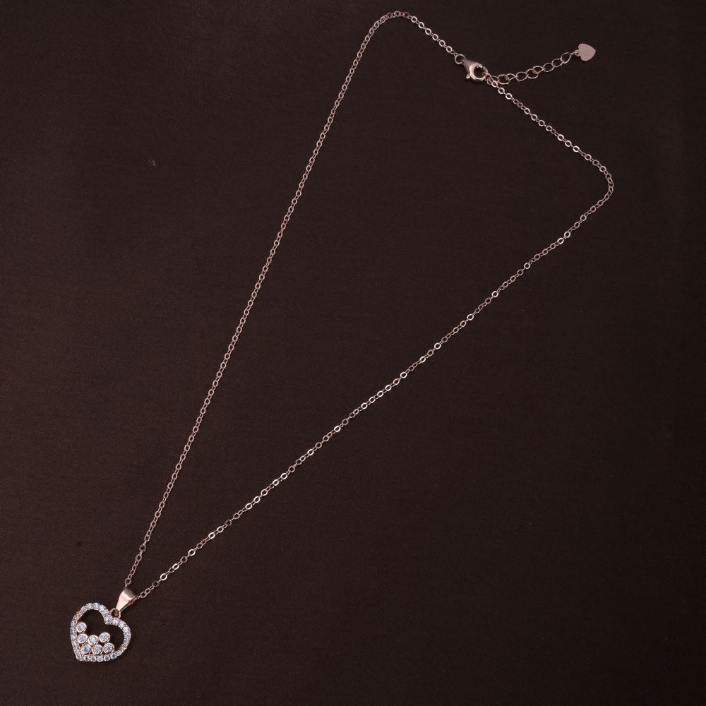 Bathed in the warm glow of rose-gold, this dazzling piece features shimmering stones and a contemporary design.