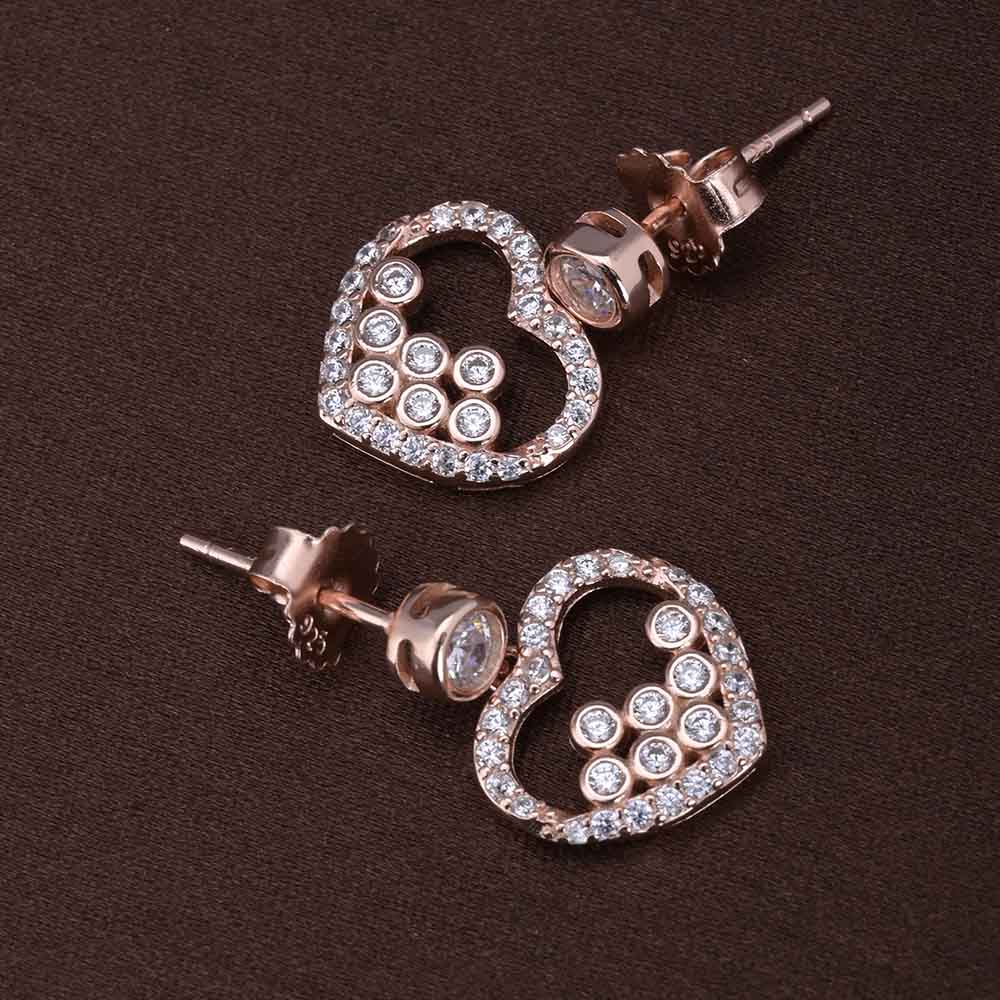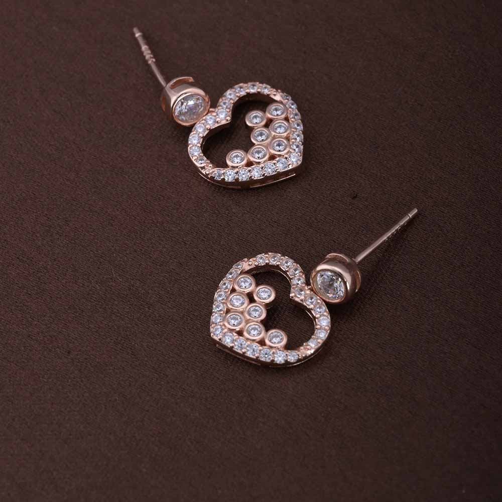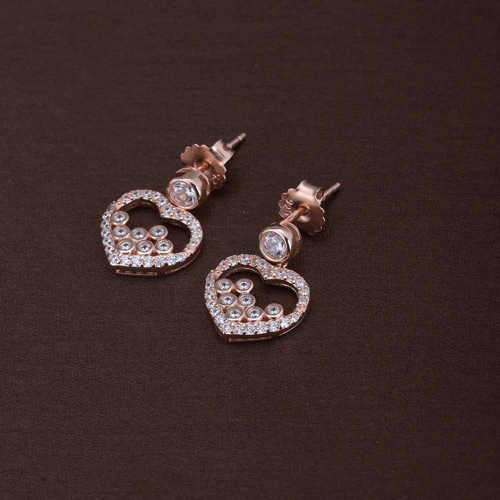 Bathed in the warm glow of rose-gold, this dazzling piece features shimmering stones and a contemporary design.
