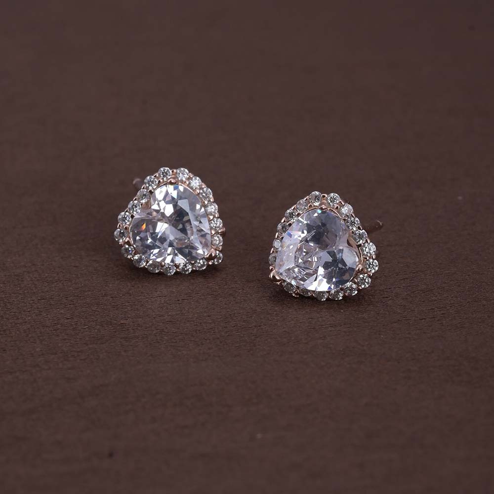 Zircon Heart Studs | Rose Gold