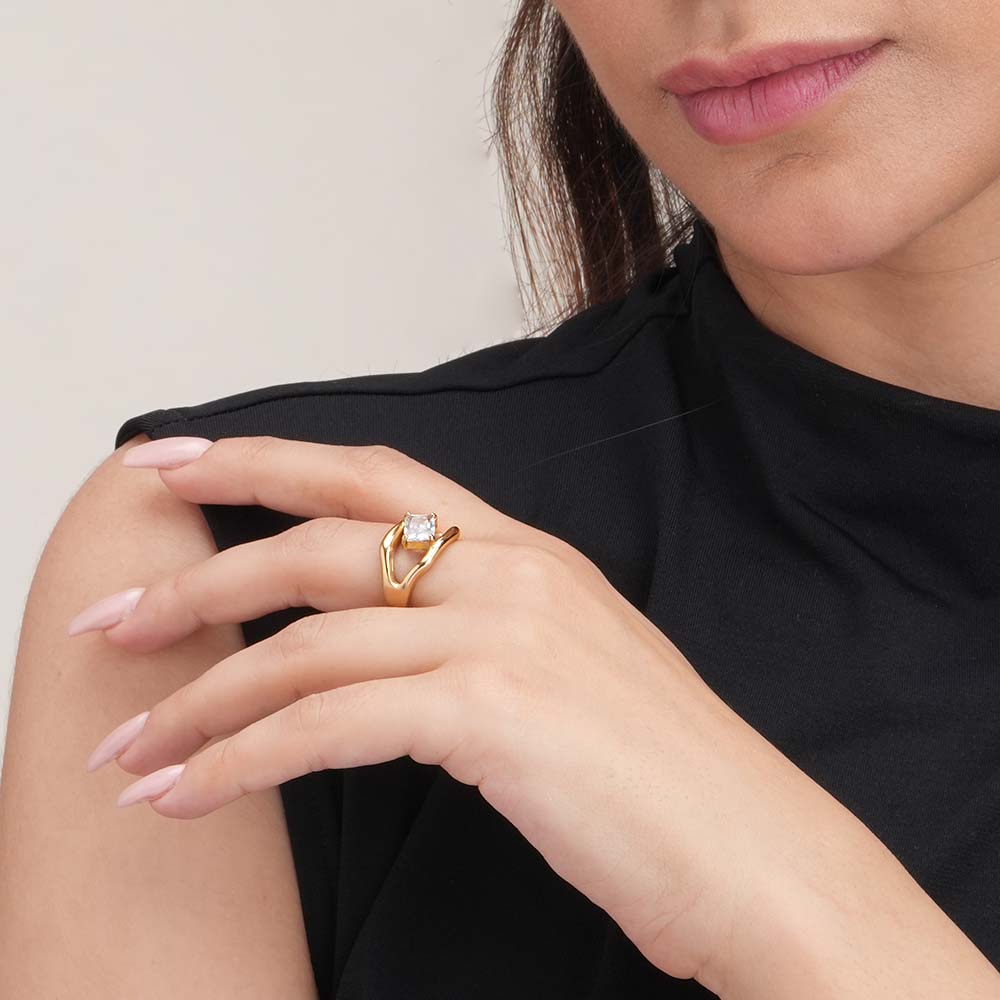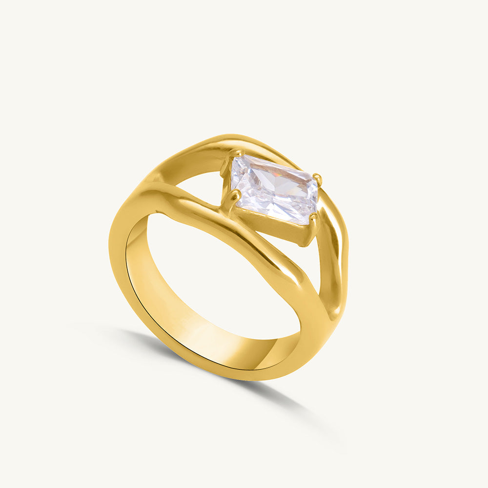 The Zirconia Bold Stone Ring is designed to turn heads with its oversized cubic zirconia centerpiece set against an 18k gold tone band. This statement jewellery piece blends elegance with glamour, making it the perfect ring for festive occasions, evening parties, or a bold everyday style. Waterproof and anti-tarnish, it’s built to shine season after season.